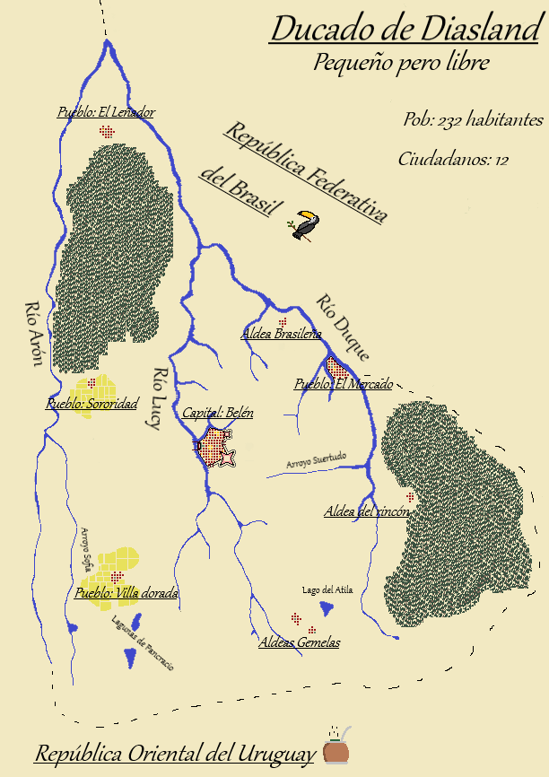 El Ducado de Diasland, se dividirá en 4 provincias las cuales serán controladas por 3 representantes electos por el Duque y la capital "Belén", será administrada por el Duque en ejercicio.